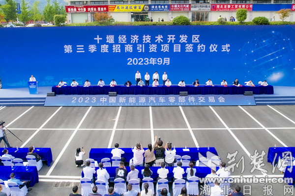 2023交易會期間,十堰經開區在交易會招商引資項目集中簽約儀式上,共簽約項目40個,總金額360.8億元,簽約項目個數、簽約項目投資額度均占到了全市各縣市區招商簽約項目的一半以上。主要包括新能源汽車空調研發生產項目、氫能產業生態鏈項目、新能源專用車項目、輪轂電機項目等新能源汽車整車、新能源關鍵零部件以及新能源汽車生態鏈產業項目。
