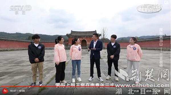 荊楚網(湖北日報網)訊(通訊員 張慧仙、胡安怡、杜鵬)近日,中央電視臺科教頻道(CCTV10)《跟著書本去旅行》欄目連續播出《探秘武當山》之樃梅果、騫林茶、張三豐和武當武術系列節目。該節目由湖北汽車工業學院人文學院院長,湖北省人文社科重點研究基地武當文化研究與傳播中心副主任黃永昌教授主講,湖北汽車工業學院多名學生參與節目錄制。