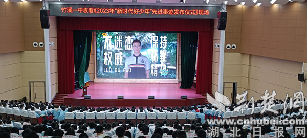 荊楚網(湖北日報網)訊(通訊員 吳星、王麗欣)10月19日晚,十堰市竹溪一中組織高一學生集中觀看2023年“新時代好少年”先進事跡發布儀式。