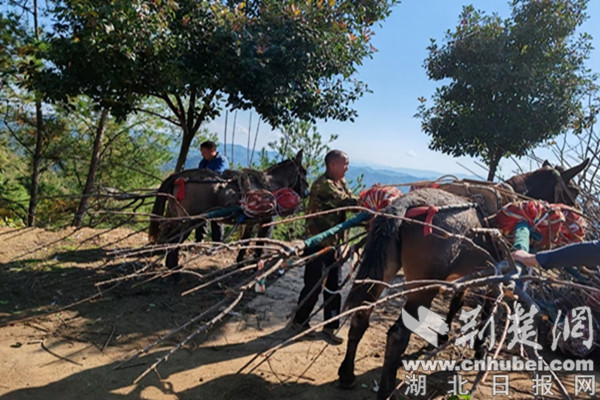 荊楚網(wǎng)(湖北日報網(wǎng))訊(通訊員 李鎮(zhèn)海、李秀芳)近期,在十堰市鄖西縣城關(guān)鎮(zhèn)大尖山,時常聽到山上傳來了吆喝聲和馬蹄聲,工人們牽引著6頭騾子馱著樹苗、泥土和栽樹工具上山植綠。