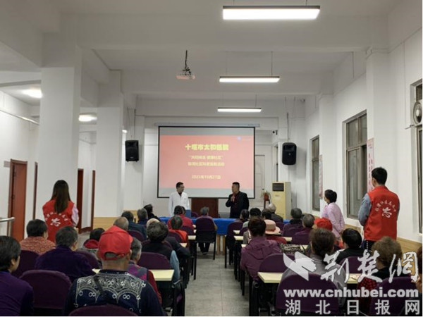 荊楚網(湖北日報網)訊(通訊員 朱雅琪、官雁楠、劉娟娟)為了提高老年人疾病預防能力,強化老年人自我保健意識,10月27日,十堰市張灣區車城路街道張灣社區聯合市太和醫院健康管理部、綜合醫療科、合眾養老中心在張灣社區老年大學教學點開展共同締造健康社區科普宣教活動。
