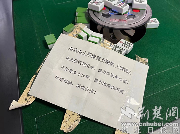 28日下午14時(shí)許,民警接到群眾舉報(bào)城區(qū)某商店內(nèi)有人聚眾賭博,民警聞警而動(dòng)迅速抵達(dá)現(xiàn)場(chǎng),只見狹小的商店內(nèi)部被改造成了二層“復(fù)式樓”,6人正在賭桌上“酣戰(zhàn)”。民警在現(xiàn)場(chǎng)發(fā)現(xiàn)墻上還貼著“你來借錢我困難,我去賒賬你心煩!不如你來不欠賬,我不困難你不煩!”的打油詩(shī)。