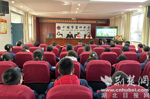 荊楚網(wǎng)(湖北日?qǐng)?bào)網(wǎng))訊(通訊員 趙森、郝欽楊)為進(jìn)一步加強(qiáng)對(duì)學(xué)生的法治宣傳教育,提高學(xué)生的自我保護(hù)能力,營(yíng)造良好的校園法治環(huán)境和氛圍,12月1日,十堰市張灣區(qū)紅衛(wèi)街道周家溝社區(qū)黨委聯(lián)合十堰市第四中學(xué)開展法治宣講進(jìn)校園活動(dòng),吸引了150余名師生踴躍參與。