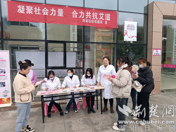 荊楚網(湖北日報網)訊(通訊員 鄒傳梅)12月1日,十堰市房縣婦幼保健院組織醫療骨干在門診大樓前廣場開展了主題為“凝聚社會力量,合力共抗艾滋”義診宣傳活動。