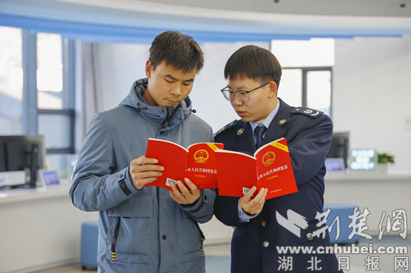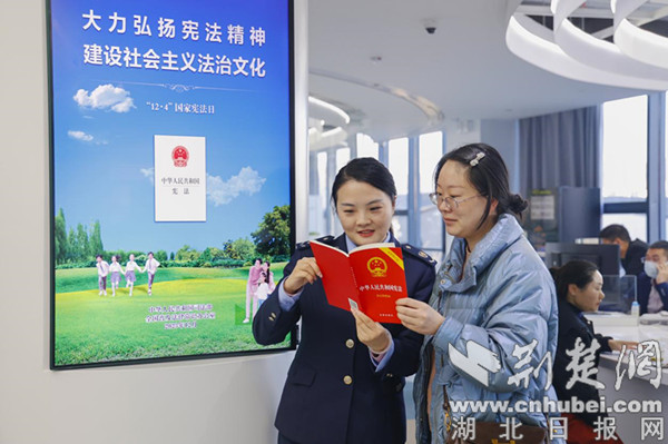 荊楚網(wǎng)(湖北日報網(wǎng))訊(通訊員 薛羽、張雅雯)“原來憲法離我們這么近!”在十堰市竹山縣政務(wù)中心三樓大廳稅務(wù)專區(qū),一塊塊展播屏中滾動播放著憲法宣傳海報,吸引了往來納稅人繳費人的目光。