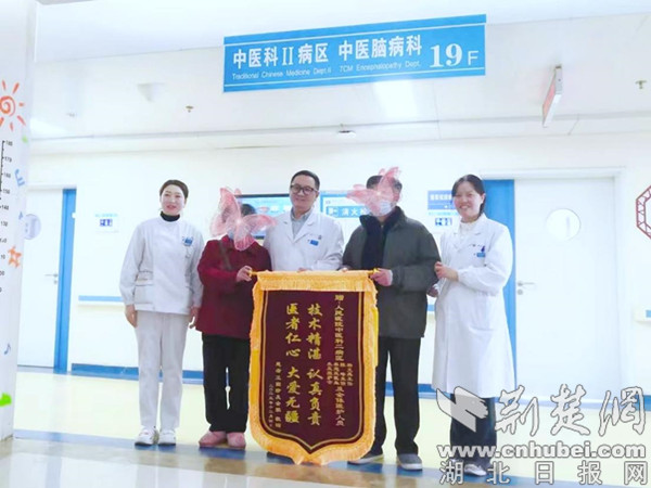 荊楚網(湖北日報網)訊(通訊員 馬婷婷、李廷玉)近日,90歲高齡的患者申爺爺及家人將一面印有“技術精湛 認真負責 醫者仁心 大愛無疆”字樣的錦旗送至十堰市人民醫院中醫醫學中心2病區楊文昊主任和陳峰副主任醫師手中,以表達對中醫科2病區全體醫護人員精心治療和悉心護理的贊譽和感謝。