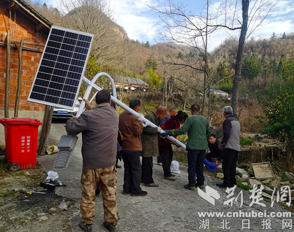 村民協助安裝路燈。 通訊員供圖