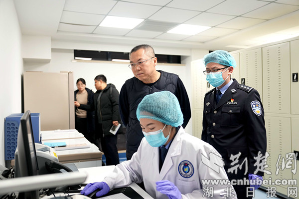 荊楚網(湖北日報網)訊(通訊員 戢子軒)12月15日,公安部鑒定中心警務技術二級總監耿月祖一行到十堰市茅箭區公安分局開展全國示范刑事科學技術室等級評定復核工作。省公安廳刑偵總隊刑事技術支隊支隊長王海生,市公安局黨委委員、副局長周淑萍,刑偵支隊支隊長劉海濤,茅箭區副區長、公安分局局長王振、分局黨委副書記、政委周宏卓等陪同。