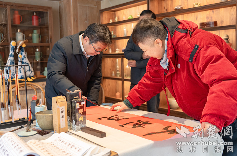茅箭區文聯邀約書法家為村民寫對聯。通訊員供圖