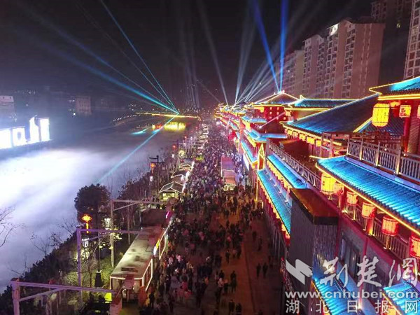 荊楚網(湖北日報網)訊(通訊員 郭浩)12月30日晚,湖北竹溪傾力打造的中國首個沉浸式文旅街區“武陵不夜城”正式開街,來自全國各地50000余名游客在這里賞山二黃戲曲、品竹溪美食、觀水秀表演。