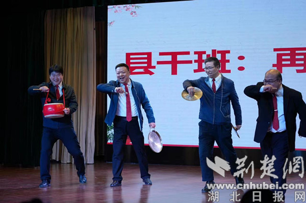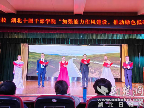 伴隨著律動的音樂和優雅的舞姿,匯報演出在市委黨校教職工的歌舞《一江情深》中拉開帷幕,他們用優美的舞姿深刻詮釋了十堰作為祖國北方“守井人”的奉獻擔當,展現新時代干群昂揚向上的精氣神。黨外科干班的《跨越百年的承諾》用詩朗誦的形式歌頌黨的豐功偉績,表達了對黨和國家的無限深情。縣干班的三句半《再把黨校贊》回憶著黨校培訓中的點點滴滴……