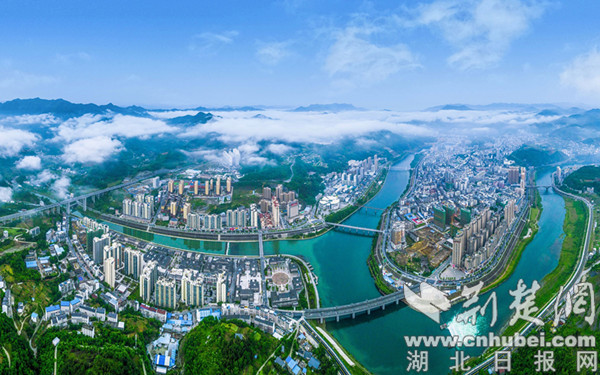 竹山縣城“一泓碧水、兩岸綠色、十里美景”的全域生態美景。 王俊攝
