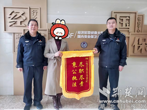 劉女士為茅箭區公安分局經偵大隊民警送錦旗。 通訊員供圖