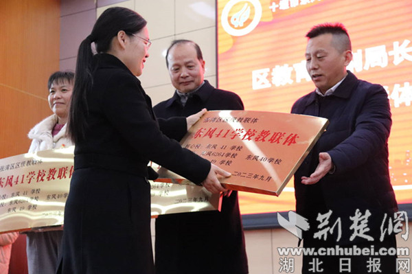 在教學副校長陳群領學《東風41學校教聯體管理制度》,初中教務主任段鳳平宣讀《東風41學校2024年教聯體工作計劃》后,教聯體雙方簽署了教聯體合作協議,張局長進行了現場授牌儀式。