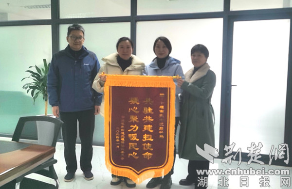 荊楚網(湖北日報網)訊(通訊員 權榮)1月30日下午,十堰市張灣區花果街道二堰鋪社區兩委將一面印有“共駐共建擔使命,凝心聚力暖民心”的錦旗送到張灣區統計局,并代表全體社區居民對區統計局近年來對二堰鋪社區幫扶表示感謝。