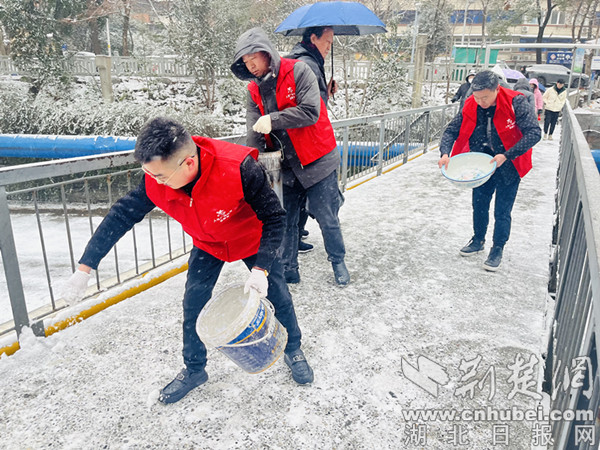 荊楚網(湖北日報網)訊(通訊員 朱雅琪、鄭彥)大雪紛紛揚揚,為城市增添別樣的景致,也為居民的出行帶來了不便。十堰市張灣區車城路街道以雪為令,第一時間啟動應急預案,街道干部迅速響應在轄區開展掃雪除冰行動,為轄區居民的日常出行保駕護航。