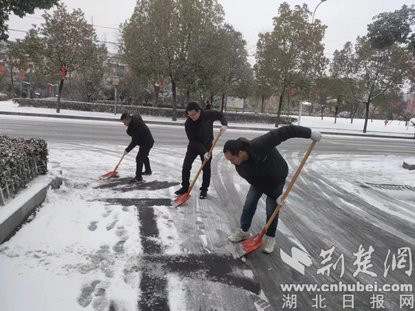 荊楚網(wǎng)(湖北日?qǐng)?bào)網(wǎng))訊(通訊員 程灝)2月2日夜間,十堰市普降大雪,路面出現(xiàn)積雪、結(jié)冰現(xiàn)象。為應(yīng)對(duì)此次強(qiáng)降雪天氣,東城開發(fā)區(qū)應(yīng)急突擊隊(duì)全力以赴開展除雪保暢工作。截至2月3日上午共組建冬季除雪保暢應(yīng)急隊(duì)伍16支197人,使用融雪劑4噸、除雪鏟及鐵鍬150把,各類警示標(biāo)志標(biāo)牌及警示錐筒200個(gè)。