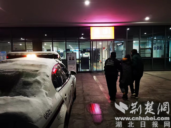 簡單詢問后,民警和群眾將該女子攙扶到警車上,雪夜中駕車20公里將該女子送到醫院治療。