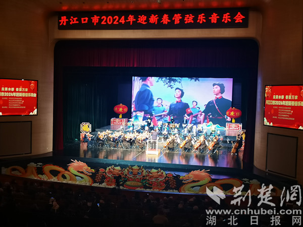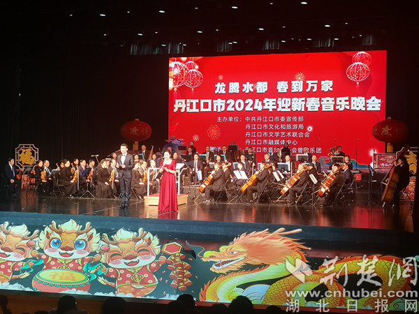 荊楚網(湖北日報網)訊(通訊員 周玉娟、顧珊、楊晨君)龍騰水都,春到萬家。2月6日晚,丹江口市2024年迎新春音樂晚會在該市均州劇場華麗上演。來自丹江口市的優秀音樂家和文藝愛好者齊聚一堂,為觀眾獻上了最精彩的節目,送上了最真摯的新春祝福,這是丹江口市這座縣級城市首次舉辦迎新春音樂晚會。