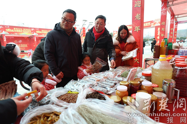 臘月到,年貨俏。秦楚鄉村年貨節設置150個展位,有1200多種商品供市民選擇。還設有50個特色農產品展位,用于售賣該縣18個鄉鎮推選出的具有地方代表性的優質農產品。