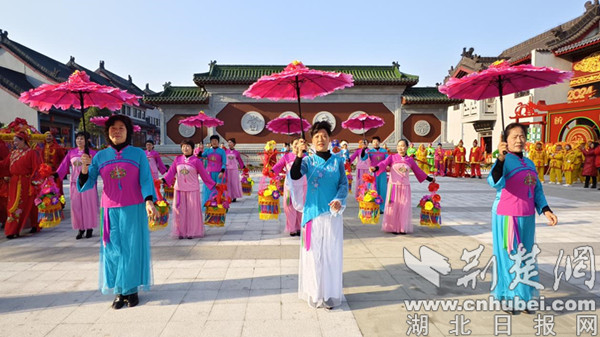 在大岳武當城、玉虛街等地,為豐富游客游覽內(nèi)容,增強游客體驗感和參與性,武當山特區(qū)精心組織了90場次武當廟會展演和非遺文化巡游。威風(fēng)鑼鼓、舞龍、舞獅、推小車、挑花籃、趕毛驢、采蓮船、抬花轎等傳統(tǒng)民俗活動,為游客展示了別開生面、獨具特色的武當文化盛宴。傳統(tǒng)民俗表演隊伍巡游,讓市民和游客近距離感受濃濃年味和武當非遺文化的魅力。此外,廟會現(xiàn)場還準備了各類美食、文創(chuàng)禮品,吸引了眾多游客打卡、品嘗。