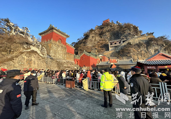 春節(jié)期間,武當山風(fēng)景如畫,移步異景,各大景區(qū)內(nèi)客流如織,到處人聲鼎沸,游客有序參觀、文明游覽。武當山景區(qū)春節(jié)日均接待游客突破萬人,迎來2024年春節(jié)旅游假期“開門紅”。快樂谷景區(qū)、太極湖水上游景區(qū)游客接待量攀升,較2023年同比增長11%、13%。武當山春節(jié)旅游市場呈現(xiàn)出“高開穩(wěn)走”的態(tài)勢。