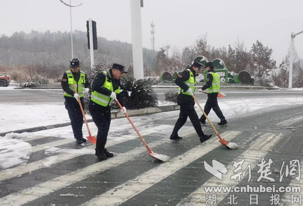 針對(duì)人流量大的五堰街、人民醫(yī)院天橋積雪問題,朝陽所民警聯(lián)合社區(qū)工作人員一起對(duì)轄區(qū)天橋及道路進(jìn)行掃雪除雪,防止老人滑倒受傷。在茅箭區(qū)茅塔鄉(xiāng),武當(dāng)路派出所民警聯(lián)合街辦干部,對(duì)鄉(xiāng)村道路投放融雪劑,確保道路不結(jié)冰。此外,人民路派出所、東城開發(fā)區(qū)派出所安排多組警力在火車站、客運(yùn)站、十堰東高速口附近進(jìn)行不間斷巡邏、值守,防止道路結(jié)冰。