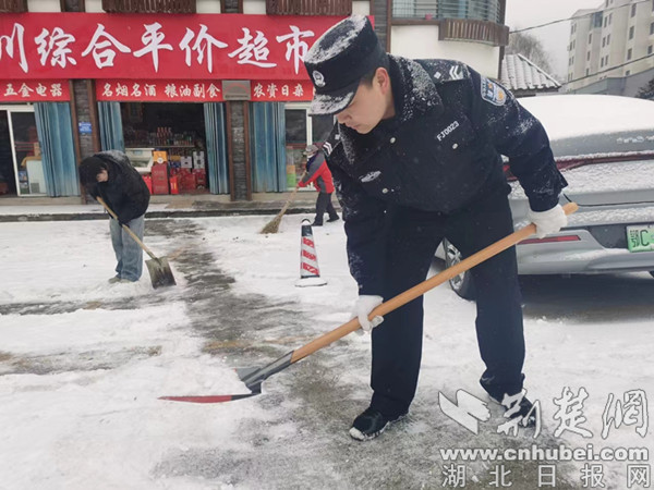 2月22日7時(shí),茅箭區(qū)公安分局大川派出所社區(qū)民警周華帶著駐村輔警張德明便來到群眾家中“報(bào)道”。拿起鐵鍬、工具就開始鏟雪。為應(yīng)對(duì)寒潮天氣,大川派出所按照“一人一村、一人一路”的要求,明確責(zé)任民警、輔警,快速應(yīng)對(duì)惡劣天氣。
