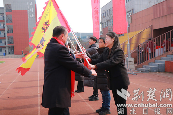 校長劉云授予高三各班班主任得勝旗。 通訊員供圖