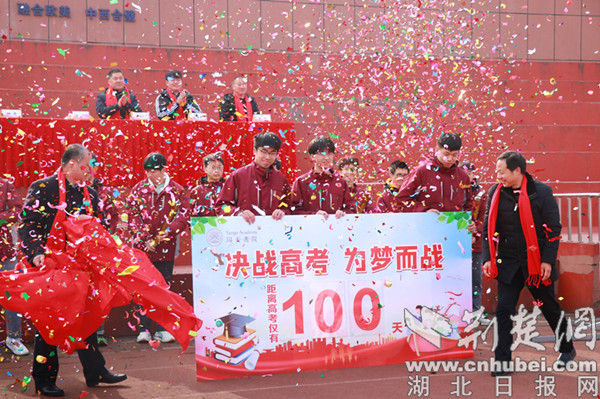 荊楚網(湖北日報網)訊(通訊員 樊成棟)為緩解心理壓力,激發學習潛能,振奮拼搏精神,激揚百日斗志,2月27日上午,十堰陽光書院高考百日誓師大會在學校運動場隆重舉行,學校領導班子、家長代表、高中部全體師生參加誓師大會,為高三學子加油、助威、壯行。