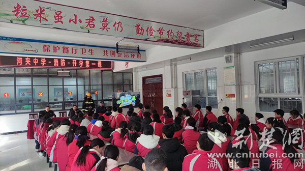 荊楚網(湖北日報網)訊(通訊員 許佳木、馬馳騁)3月1日,十堰市鄖西縣河夾鎮組織市場監管所、派出所、消防隊到該鎮初級中學,通過互動問答、現場體驗、應急演練等多種形式為全體師生上了一場豐富多彩又有意義的安全“第一課”,讓800余名師生享受了一場安全教育“大餐”。