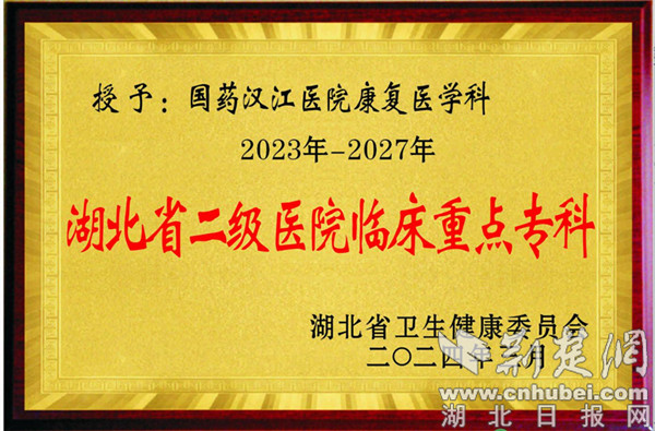 國藥漢江醫院康復科獲批湖北省省級臨床重點??啤?通訊員供圖