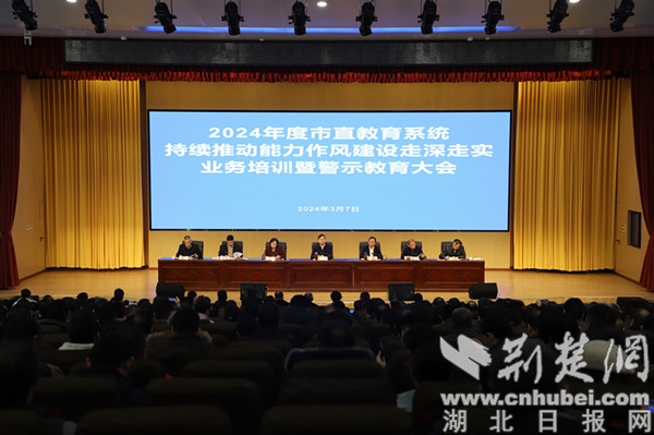荊楚網(湖北日報網)訊(通訊員 鄧華威)3月7日,十堰市直教育系統2024年度持續推動能力作風建設走深走實業務培訓暨警示教育大會在湖北漢江技師學院召開。市教育局黨組書記、局長寇偉出席會議并強調,要認真落實全市持續推動能力作風建設走深走實 奮力譜寫中國式現代化十堰篇章大會精神,以更高水平、更高標準、更高要求推動市直教育系統能力作風建設走深走實,以教育所能服務全局所需,有力保障中國式現代化在十堰落地見效。