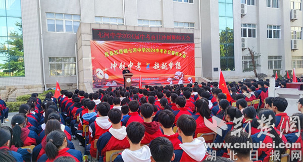 荊楚網(湖北日報網)訊(通訊員 王云)為充分調動師生的工作、學習積極性,進一步激發工作、學習熱情,更好地備戰中考,3月12日,十堰市房縣七河中學召開了2024屆中考百日誓師大會。