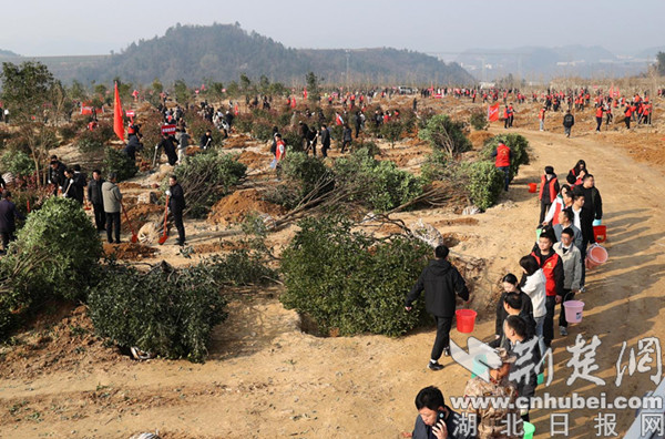 據統計,當天上午參加植樹的干部群眾共栽植櫻花、石楠、白玉蘭、桂花、銀杏等樹種6600余棵,綠化面積275畝。