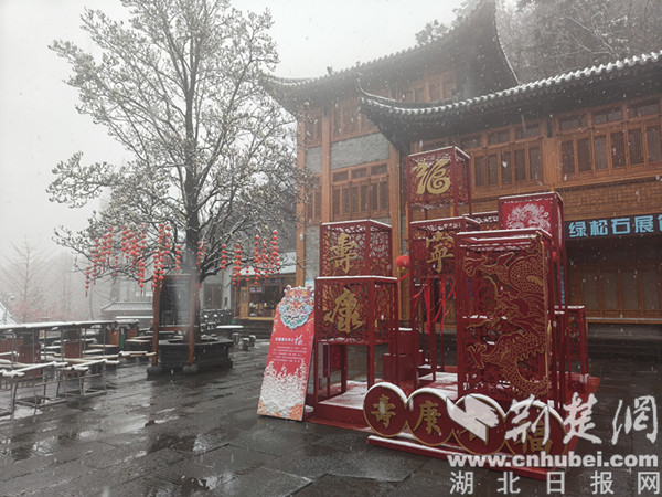 荊楚網(湖北日報網)訊(通訊員 吳俊、王斌乾、宋李毅)在這個本應是春意盎然的時節,3月17日夜間的武當山風景區卻迎來了一場別樣的“春天”——桃花雪。潔白無瑕的雪花紛紛揚揚,將丹墻碧瓦裝點得如詩如畫,八百里武當瞬間變成了一幅水墨畫卷,橫亙在天地之間,美得令人心醉。