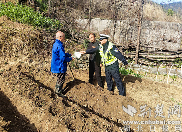 荊楚網(湖北日報網)訊(通訊員 楊梟 孫弋)“為了自己的生命安全,千萬不能隨意翻越防護網進入高速公路行走、放牧,也不能損壞高速公路上的安全設施。”3月26日,在竹溪縣水坪鎮梧葉溝村,湖北省十堰市公安局高警支隊竹山大隊民警開展交通安全宣傳進山村活動,反復叮囑村民禁止違法上高速。