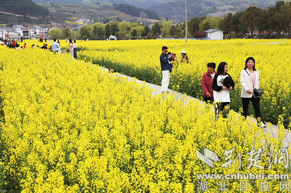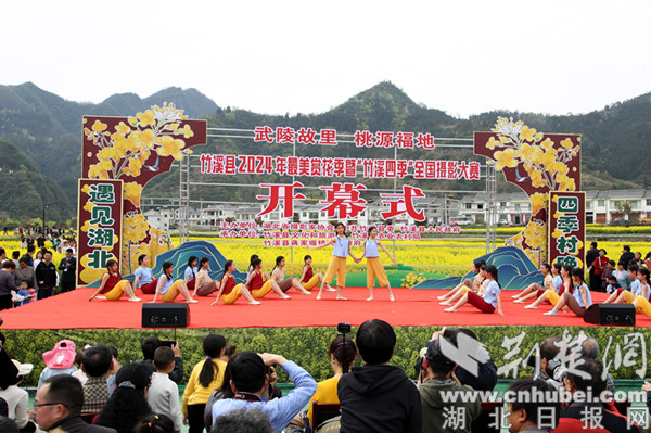 荊楚網(湖北日報網)訊(記者 張世鑫 通訊員 顏義眾)3月30日上午,竹溪縣蔣家堰鎮敖家壩油菜花基地,來自陜西、武漢、十堰等地游客、攝影師邊欣賞油菜花海的生態美景,邊品鑒竹溪非遺劇種山二黃戲曲。當日,竹溪縣2024年最美賞花季暨“竹溪四季”全國攝影大賽啟動。