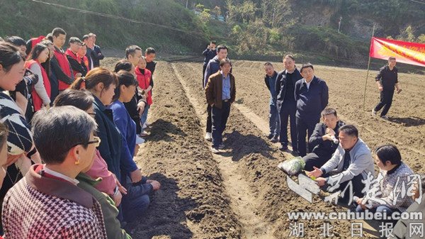 荊楚網(湖北日報網)訊(通訊員胡夢瑤、徐輝兵)“我們這個辣椒屬于青紅兩用品種,大家可以根據后期辣椒的市場行情選擇采摘時機,做到收益最大化。”3月29日上午,在十堰市鄖西縣板橋村辣椒栽培技術示范基地召開的湖北省科技特派員鄖西行(板橋村站)活動中,省農科院經濟作物研究所所長王飛正在對辣椒優質高效栽培技術進行培訓。