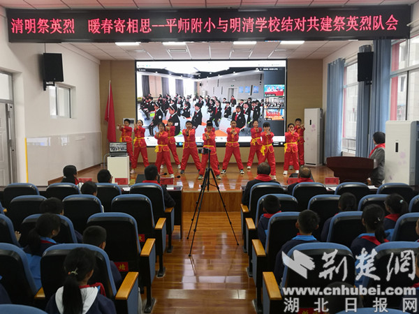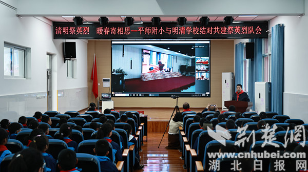 荊楚網(wǎng)(湖北日報網(wǎng))訊(通訊員 孫迪、龔艷芬、余修禮)4月1日,湖北省竹山縣城關(guān)鎮(zhèn)明清小學(xué)與浙江省平湖師范學(xué)校附屬小學(xué)線上聯(lián)誼,線上同步直播“清明祭英烈 暖春寄相思”主題隊會。這是自今年1月竹山與平湖簽訂共建山海協(xié)作“教育共進聯(lián)盟”合作協(xié)議以來,兩地首次開展的紅色聯(lián)誼活動。