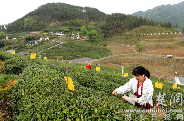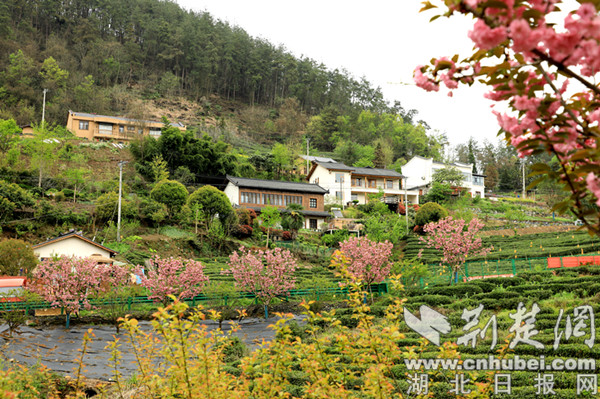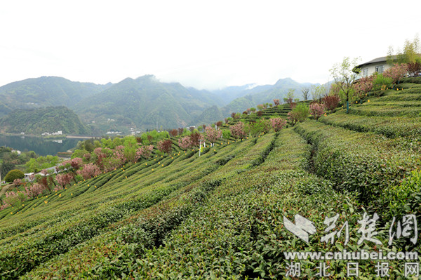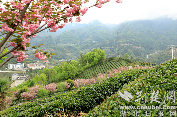 荊楚網(湖北日報網)訊(通訊員 熊飛)清明時節,十堰市竹山縣城關鎮劉家山村茶園道路兩旁櫻花盛開,花團錦簇、春意盎然。此時正值春茶開采,村里的茶農們搶抓有利天氣,背著茶簍上山采茶。一些城關居民也驅車前往,或游園觀景、或采茶體驗,茶山時頓時熱鬧起來。