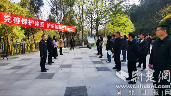 荊楚網(湖北日報網)訊(通訊員 談捷、李鎮海)4月7日上午,十堰市第42屆“愛鳥周”活動在湖北牛頭山國家森林公園正式啟動。十堰市林業局相關科室,茅箭區、張灣區、經濟開發區林業主管部門負責人。城區自然保護區和從事野生動物保護相關人員以及社會愛鳥人士參加活動。