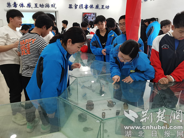 在實物參觀與模擬體驗過程中,師生們了解了禁毒歷史、染毒原因、毒品種類、危害及預防措施。“一直以為毒品距我們很遙遠,沒想到其實離我們的生活這般近。”閱覽著各式圖文介紹,不少學生感觸極深。