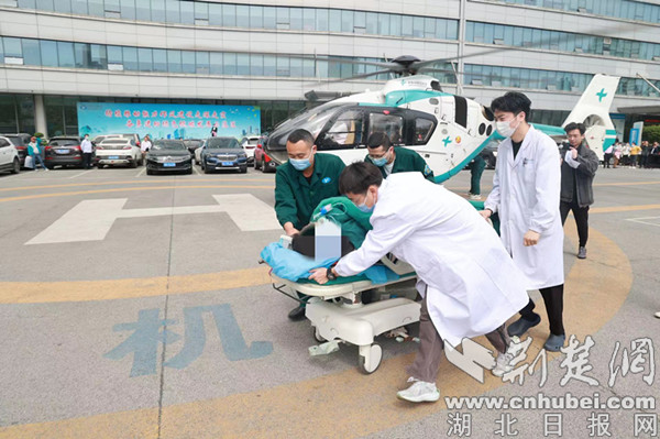 上午9:29,直升機從健康廣場起飛;9:56,直升機在竹山縣第二人民醫院降落,隨機醫護人員對患者進行了緊急處理,并將患者及時轉運至直升機上,10:06,直升機再次起飛;10:34,直升機順利返院。僅用28分鐘就將患者順利接回,為患者爭取到了寶貴的救治時間。