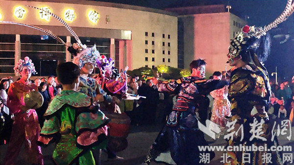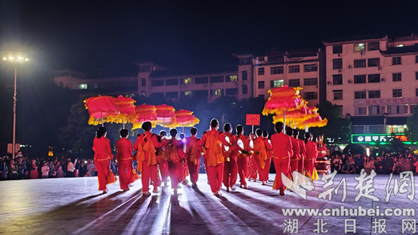 4月21日20時,武當(dāng)文化廣場鑼鼓喧天,熱鬧非凡。國家級非遺潮汕英歌舞,閩臺特色民俗文化舞龍、舞獅、大鼓涼傘、腰鼓表演等節(jié)目一一精彩展示。