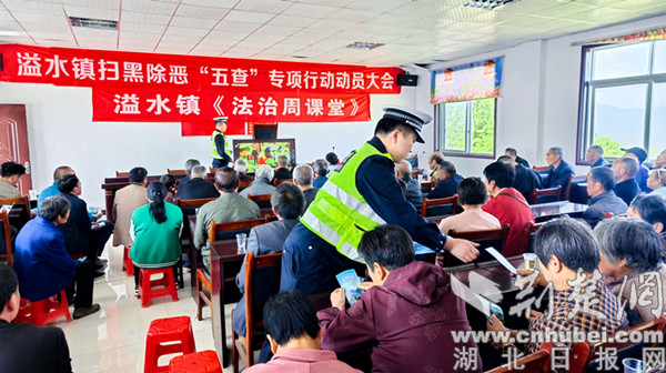 荊楚網(湖北日報網)訊(通訊員 袁杰、孫弋)4月23日下午,晴空萬里,在湖北省十堰市竹山縣溢水鎮,燕子山村正舉行一場村民大會,現場熱火朝天。近百名村民聚集在黨員活動中心,或坐或站,聚精會神地觀看交通安全宣傳視頻,聽十堰市公安局高警支隊竹山大隊的民警講解交通安全知識。