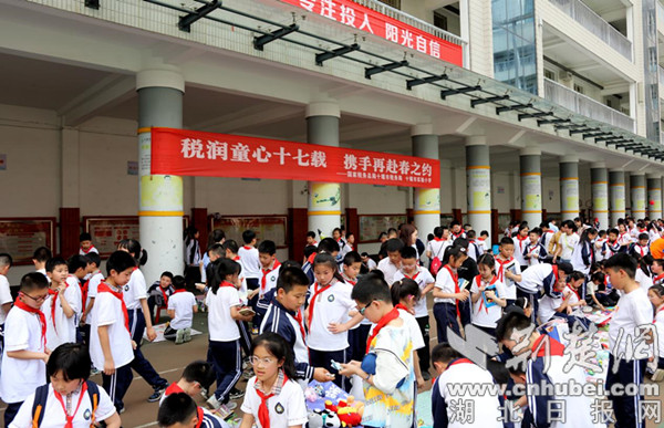 荊楚網(湖北日報網)訊(通訊員 陳玉)芳菲四月,陽光明媚,氣溫逐漸升高,可十堰市實驗小學操場上的熱度卻比氣溫還高,由十堰市稅務局、十堰市實驗小學聯合舉辦的“稅潤童心——走進童年雜貨鋪”活動在陣陣吆喝聲、叫賣聲、歡笑聲中“火爆開場”,小攤位釋放大能量,吸引不少學生來“淘寶”。