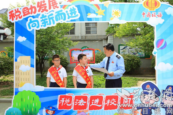 “稅務叔叔說,做生意和做人一樣,要講誠信,做到誠信經營、誠信納稅?!?1名“小小稅法宣傳員”在稅務干部的帶領下穿梭其中,向“老板們”講解稅收基本概念、稅收的種類和用途,以及作為公民應盡的納稅義務。