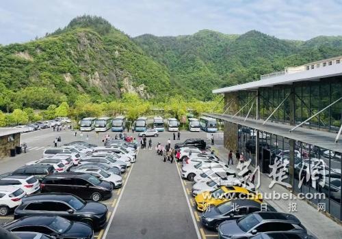 “來來來,看這里,這個瀑布當背景非常好。”五一假期首日,鄖西縣4A級景區五龍河人流涌動、熱鬧非凡,一輛輛大巴車、私家車持續不斷開進安家鄉換乘中心。