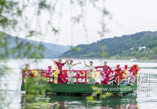 5月2日,竹山縣圣水湖景區內數萬株玫瑰、月季等鮮花競相開放,爭奇斗艷,形成了一片花的海洋,吸引了眾多游客駐足觀賞。在波光粼粼、微風拂面的圣水湖上,游客們乘坐游船、快艇穿梭于湖面上,感受著湖水的清涼和湖風的輕拂。景區組織的一個個互動演出節目讓游客們目不暇接,時刻都沉浸在歡樂和喜慶的節日氛圍中?!爸裆教一ㄔ唇謪^開街游客猛增,帶動我們景區也迎來了大客流,這兩天景區平均客流量都在5萬人次?!本皡^負責人李德琴介紹道。